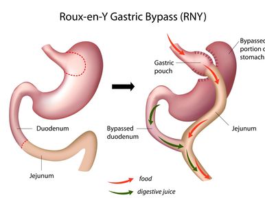 Following a gastric bypass surgery, patients feel fuller sooner and do not absorb as many calories from the food they eat.